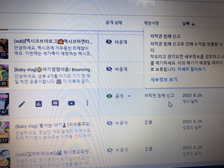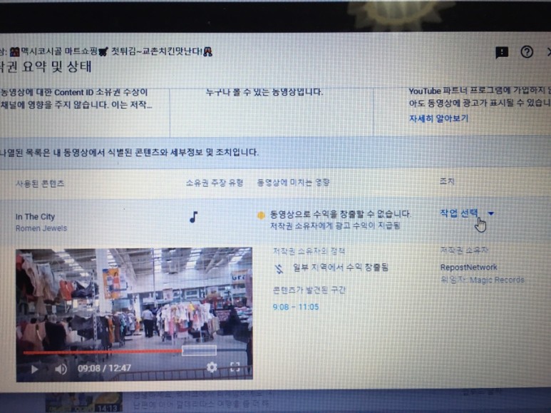3가지 오션이 있습니다. 1. 구간정리(그 부분의 영상이 끊기는 문제가 있군요) 2. 곡 바꾸기(유튜브 내의 무료 음원 중 선택하는 것입니다) 3. 노래의 음소거 (이것도 그 부분에 목소리 등이 있으면 함께 음이 사라지니 영상이 너무 어색하죠?) 정말 제가 저작권 있는 음악을 잘못 썼다면 저 세 가지 중 꼭 골라 수정해야 하는데 이 영상으로 인해 수익이 창출될 때는 꼭 해야 하는데, 이 영상으로 인해