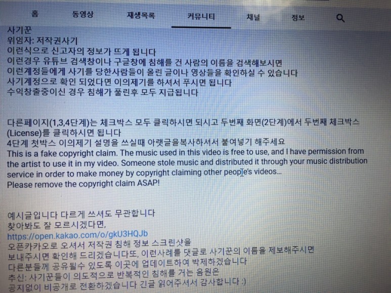 나눔뮤직 채널 커뮤니티 댓글에 원작자분이 올려주신 글! 이의제기를 자세히 설명해 주셨습니다. 다만 문장이라 조금 헷갈릴 수 있어요. 제가 직접 해봤어요! ^^
