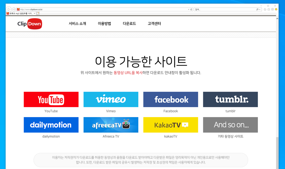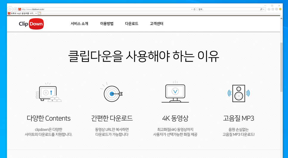 아이들이 가장 좋아하는 것 중 하나가 바로 유튜브입니다 저도 자주 보는데, 평소에는 상관 없지만 인터넷이 끊기거나 데이터가 없으면 볼 수 없지요. 특히 얼마 전에는 해외 여행을 가서 비행기를 탔는데, 와이파이도 없어서 아이에게는 보여 줄 수 없었습니다. 이럴때도움이되는게바로유튜브mp3음원추출사이트클립다운입니다. 유튜브 mp3 음원 추출 싸이 립다운의 장점이 뭘까요? 먼저 다양한 사이트의 다운로드가 지원됩니다. 그리고 정말 손쉽게 사용할 수 있어요. 최고 화질 4K까지 선택해서 사용가능합니다. MP3 같은 경우도 음원 손실이 없는 고음질 MP3 다운로드가 지원됩니다. 간단히 말하면 사용하기 쉽고, 게다가 기능까지 강대하기 때문에 사용하기 쉬워집니다. 여기에 PC는 물론 모바일에서도 사용이 가능합니다. 위에서 여러 사이트의 다운로드를 대응한다고 말씀 드렸는데 유튜브는 물론 페이스북이나 카카오TV 등 대부분의 사이트를 지원하고 있습니다. 여기서 중요한 것은 한 가지 있지만 저작권자가 다운로드를 허락한 동영상, 음원을 다운받을 수 있고 개인용으로만 사용이 가능하다는 것입니다. 이 범위 안에서 지켜야 할건 지키면서 써야겠죠? 일단 PC 버전부터 써보도록 하겠습니다 You Tubemp3 음원 추출 사이트 클립다운 홈페이지에서 프로그램을 다운로드하여 설치합니다. 프리웨어이므로 누구나 무료로 설치하여 사용할 수 있습니다. 간단하게 장착한 후 실행합니다. 유튜브에 가서 자신이 원하는 영상을 선택한 뒤 아래 공유를 클릭합니다. 그러면 이렇게 게시물에서 공유가 나옵니다만, 복사를 클릭합니다. 복사를 누르면 자동으로 우측 하단에 클립다운 창이 뜨고 다운을 받을지 묻습니다. 그 후에 자동적으로 영상이 분석되어 오디오나 비디오를 선택할 수 있습니다. 마음대로 선택하면 되지만, 영상을 필요로 하지 않고 듣기만 한다면 오디오를 선택합니다. 해상도는 자동으로 되어 있기는 하지만 원하는 대로 선택해 주시면 좋겠습니다. 4K 다운로드도 가능하지만 확장자가 MP3일 경우 가능하다고 합니다 확장자를 구분하지 않고 4K 전체적으로 다운받을 수 있도록 개발하고 있다고 합니다 저는 Full HD 비디오를 골랐습니다 이렇게 자동으로 다운을 받을 수 있어요 메뉴를 보면 우측 상단 폴더 모양은 설정된 다운로드 폴더를 바로 여는 아이콘으로 상태 아이콘을 클릭하면 바로 실행됩니다. 실제로 이와 같이 영상이 제대로 실행되는 것을 확인할 수 있습니다. 제가 유튜브 채널을 운영하는데 원본 소스를 잘못 눌러서 지워버려서 다른 채널에 올리려고 했더니 파일이 없어서 불가능했어요. 그런데 이렇게 클립다운을 이용하니 쉽게 제 영상을 내려받아 다른 채널에 올릴 수 있었어요. 또 다른 재미있는 기능은 공유기능입니다. 공유를 누르면 카카오톡, 카카오스토리, 페이스북 등 동영상 URL을 공유할 수 있습니다. 요즘다양한기기를사용하시는분들도많으시겠지만매우편리한기능이라고할수있겠습니다. 대박 기능 중 하나는 모바일에서도 쓸 수 있다는 것! 안드로이드 원스토어에 가면 클립다운 앱을 다운받을 수 있어요. 스마트폰이기 때문에 어플을 설치하는 방법이 더 쉬울 겁니다. 그리고 요즘 모바일에서도 영상 많이 보잖아요 비행기를탈때나인터넷을사용할수없는상황때문에미리다운로드받아두면스마트폰으로언제든지볼수있다는장점이있을것입니다. PC버전과 마찬가지로 사용법이 정말 간단합니다 시청 중이신 영상 주소만 복사해 주시면 되는데요? 실제로 한번 써보도록 하겠습니다. 유튜브에 가서 시청 중인 영화에 '공유'를 클릭해주세요 그러면 아래에 링크 카피가 있습니다. 링크 복사를 클릭합니다. 그리고 클립다운 앱에 들어가면 바로 영상이 추가된 걸 확인할 수 있어요 만약 추가되지 않았다면, 상부에 URL을 입력해 주세요. 오른쪽에 보시면 다운 아이콘 보이시죠? 여기를 터치해 주세요 그러면 PC 버전과 같이 오디오와 비디오를 선택할 수 있고 해상도도 선택할 수 있습니다. 저는 비디오 MP4를 선택해 보았습니다. 모바일은 720P까지 해상도를 지원하지만 화면이 작기 때문에 720P면 충분하기 때문입니다. 다운로드가 완료되면 제 보관함에서 언제든지 파일을 확인해 보실 수 있습니다. Wi-Fi가 없는 장소, 데이터를 사용할 수 없는 장소에 간다면 미리 이렇게 준비해 두면 매우 편리합니다. 모바일에서 쓰는 모습이에요실제로 모바일로 You Tubemp3 음원 추출 사이트 Clip Down 앱을 사용하고 있는 모습을 동영상으로 찍어 보았습니다. 얼마나 편리하게 사용할 수 있는지 동영상으로 바로 확인하실 수 있을 겁니다.