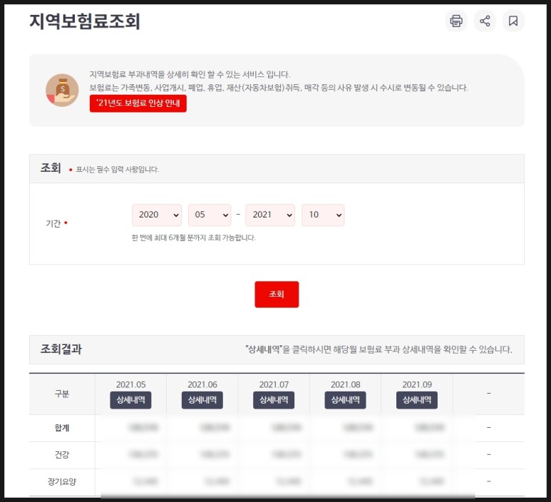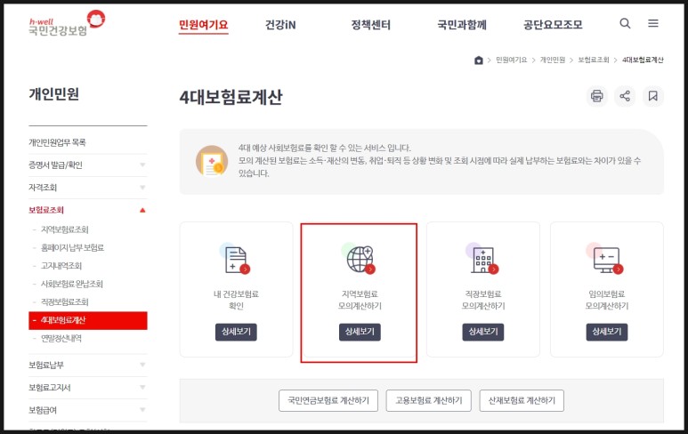 인증을 마치고 로그인하시면 본인 건강보험료를 조회하실 수 있습니다. 상세 내역을 클릭하시면 하나하나 확인도 가능합니다 직장인 가입자의 건강보험료 산정 기준은?