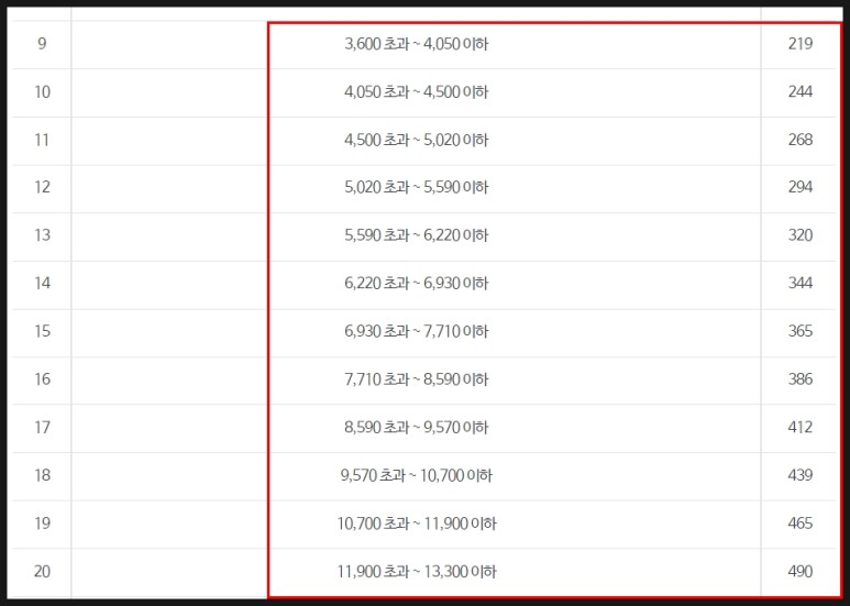 ●소득 없어도 최저 보험료 13,100만원 적용 연소득 100만원 이하의 경우는, 최저 보험료 13,100원이 적용됩니다.