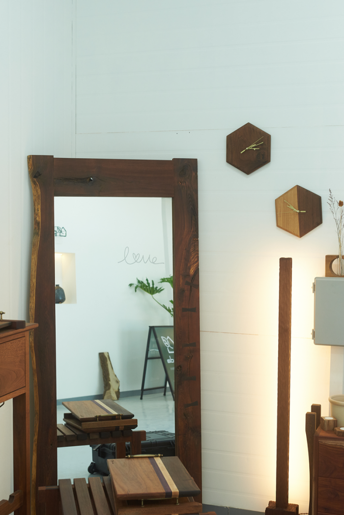 곳곳에 식물과 조화를 이룬 공간으로 인테리어가 되어 있어 빈티지 소품 숍에 온 듯한 느낌으로 우드 소품과 큰 가구들을 볼 수 있었습니다.