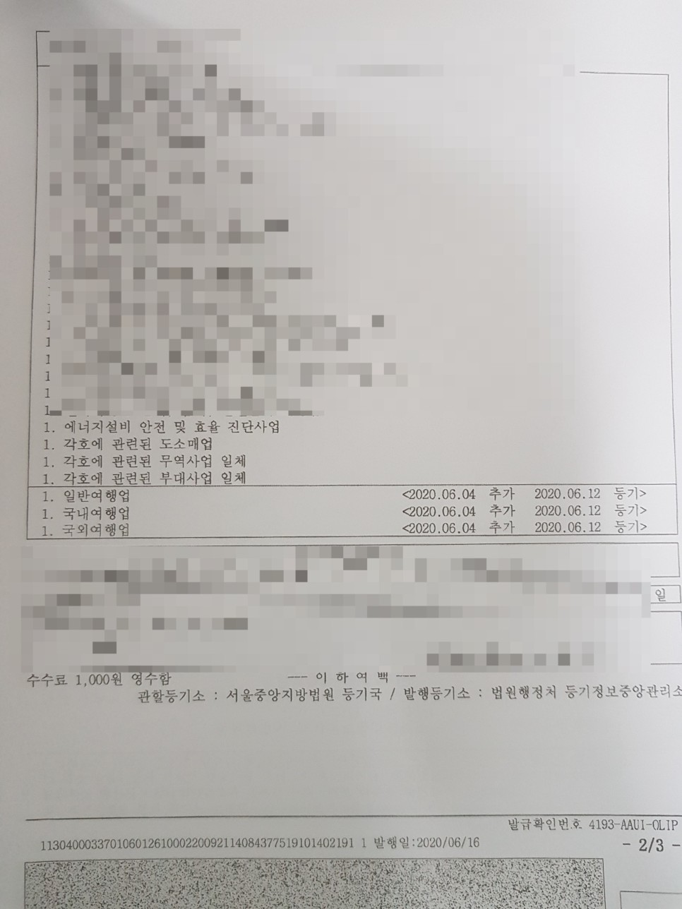 1. 법인목적사항에 여행업 추가하는 법인사업자의 경우에는 반드시 사업을 진행하기 위하여 법인등기부등본상에 목적사항에 추가하여야 합니다.예를 들어 여행업에는 일반 여행업 또는 국내외 여행업 등의 항목이 필요합니다.그렇지 않으면 관광 사업자 등록 및 사업자 등록 자체를 진행할 수 없습니다.따라서 관할등기소에 변경등기신고를 통하여 목적사항을 추가하거나 변경하여야 합니다.