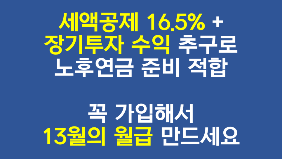 이와 같이, imp퇴직 연금은 세액공제로 최대 16.5%, 게다가 장기 투자 수익을 추구에 적절한 운용 방법에 의해 노후 연금의 준비가 유리합니다.여러가지 장점이 있기 때문에 꼭 가입해서 13월의 월급을 받는 것을 추천합니다.