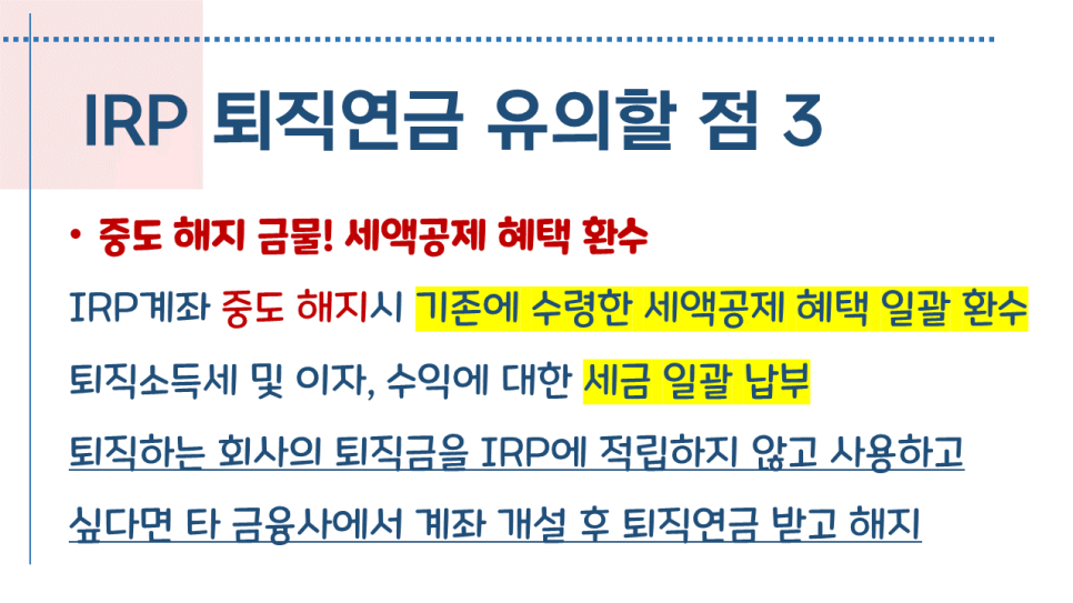 자, IRP 퇴직연금이 이렇게 많은 세금을 돌려준다는 걸 이제 이해하셨을 거예요. 하지만 혜택이 큰 만큼 주의해야 할 점이 있어요.