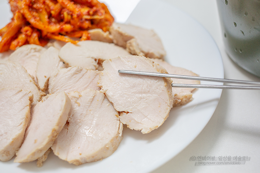 저는 한 번에 3개씩 삶아서 밥을 먹을 때마다 야채나 다시마와 함께 반찬으로 먹고 있습니다. 식단을 짤 때 샐러드와 김매기, 샌드위치 드레싱의 종류가 입에 맞지 않아 먹기 불편하셨던 분, 국내산 음식으로 세끼를 드신다면 된장맛이 나는 부드러운 닭 가슴살에 만족하실 것입니다.집에서 직접 삶으면 너무 뻑뻑하고 냄새나고 요리하기가 어려우니 항상 훈제, 스팀을 비싸게 사드시는 분들은 집에서 닭햄을 만들어서 돈을 절약하세요! 다이어터가 아닌 분들도 단백질 섭취량을 늘리기에 좋고 평소 일상적인 반찬으로 먹기도 맛있으니 이렇게 한번 만들어 보세요:)