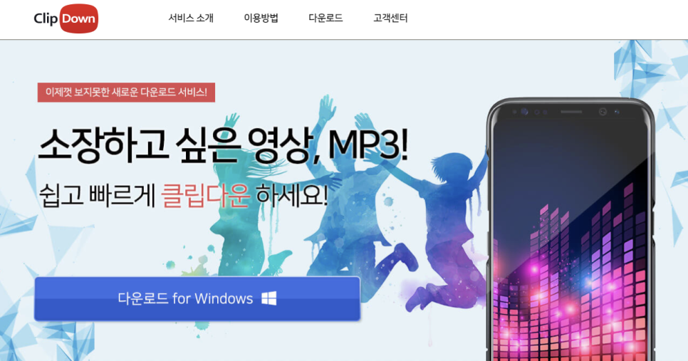ClipDown 홈페이지 충분히 주의를 줬다면 공식 홈페이지를 방문하세요. 현재 Windows판만 서비스중이며, Mac OS판은 지원하지 않습니다. 그 대신 스마트폰 사용자들을 위한 모바일 앱(원스토어 한정)도 있으니까 평소에 많이 이용하는 플랫폼을 사용하시면 됩니다. 저는 PC, 모바일을 모두 설치해서 활용하고 있습니다.