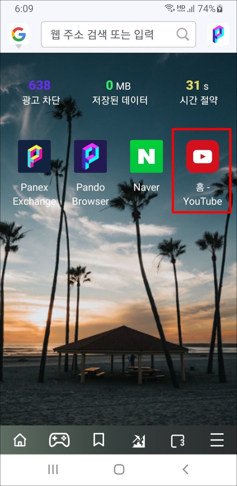 내가 자주 방문하는 홈 스크린에는 유튜브 바가 없다.