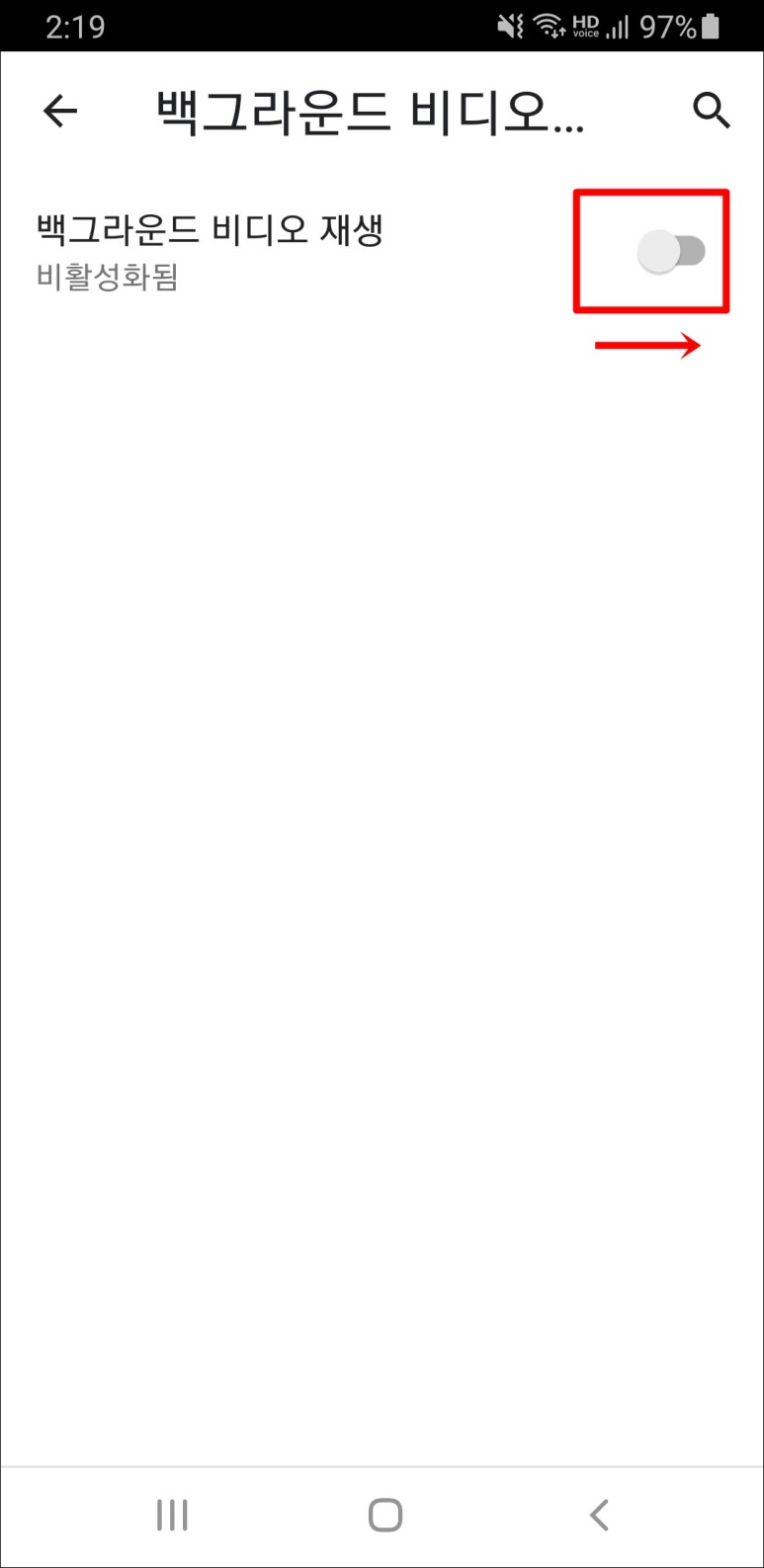 이어 'Bac kground Video Play' 버튼이 보이는데, 버튼을 오른쪽으로 이동하면 버튼이 활성화된다.