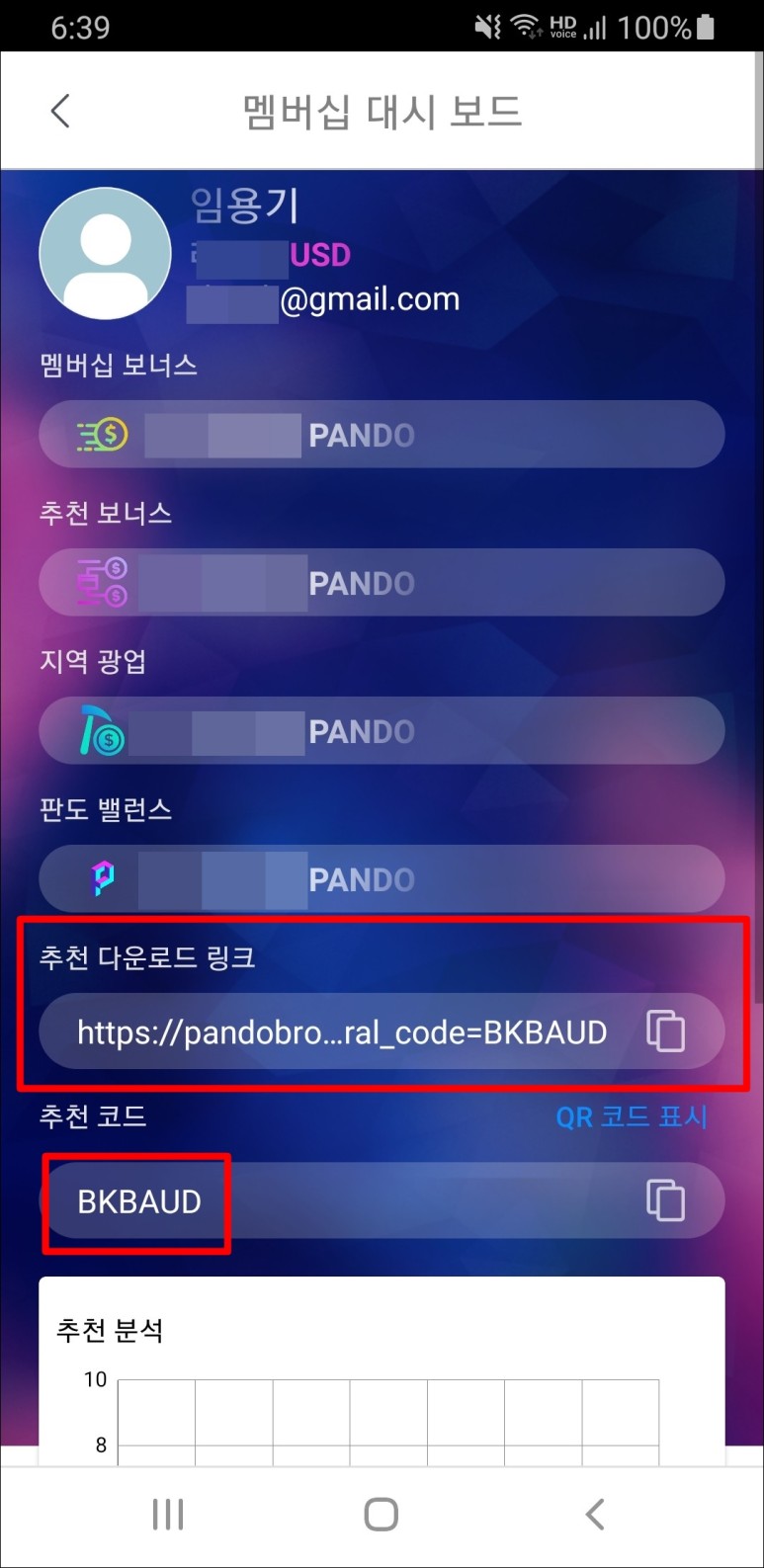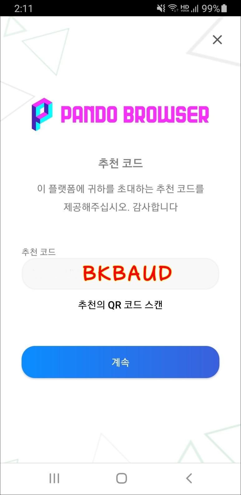 광고 시청 등 이용자의 기여도에 따라 적절한 보상(코인 마이닝)을 축적하는 앱이어서 가입을 위해서는 추천코드가 필요하다.