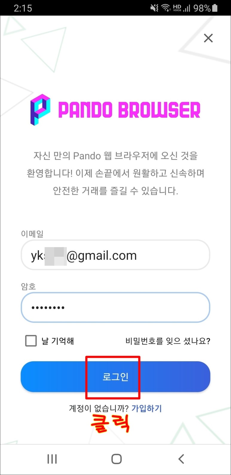 로그인에서 "가입"을 누르면 추천코드 입력창이 보입니다.