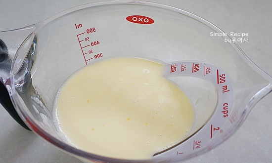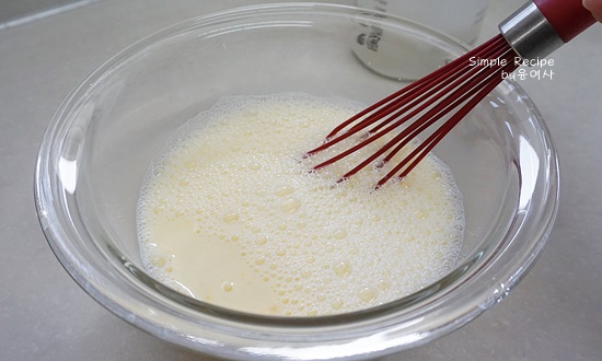 계란물을 체로 쳐서